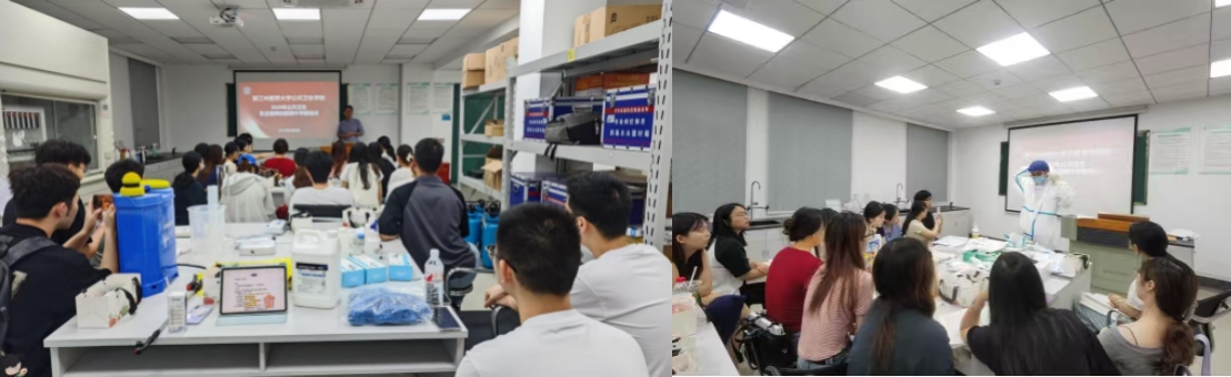 培训现场,专家们通过理论讲解与实操演示相结合的方式开展教学。冷坤坤老师系统讲解了防护服规范穿脱流程,强调这一关键技能在职业实践中的重要性;曹阳老师则聚焦消毒消杀技术,详细演示了消毒剂配制、器械操作等实用技能;高鑫老师重点指导了各类环境样本采集方法及专业仪器的规范使用;王玲莉老师通过现场示范讲解了食品采样技术要点;阮晓颖老师则针对职业卫生检测的特殊要求进行了专业指导。