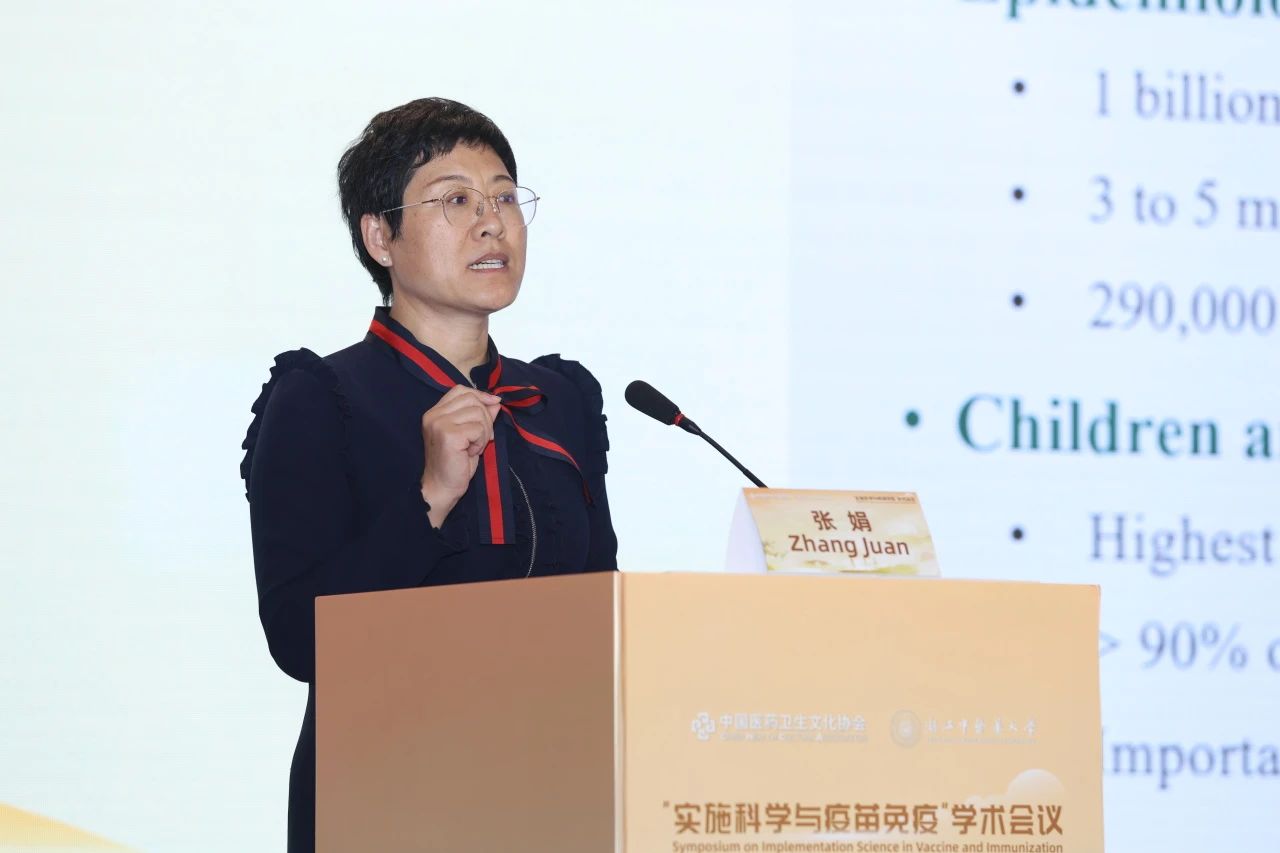 中国医学科公司北京协和医公司张娟作题为《北京市学龄儿童校园流感疫苗接种项目质量改进整群随机试验:一项实施性研究》的主旨报告。她介绍了一项基于实施科学的校园流感疫苗接种质量改进整群随机试验,为循证的公共卫生干预实施提供了新的实证依据。