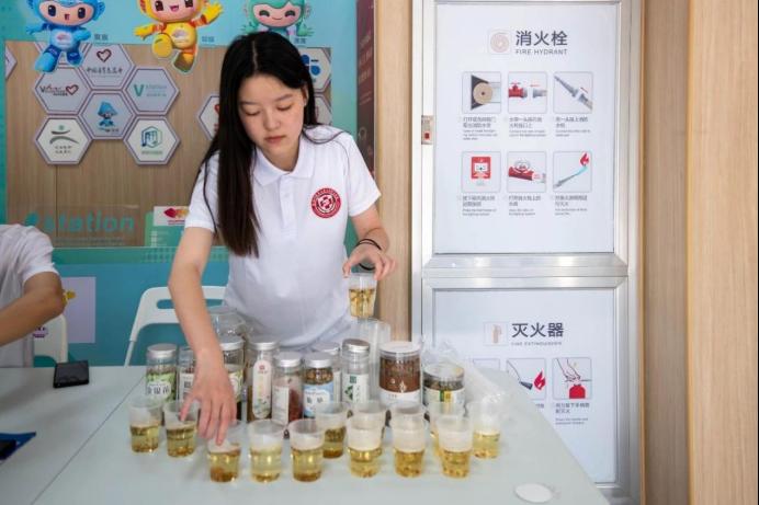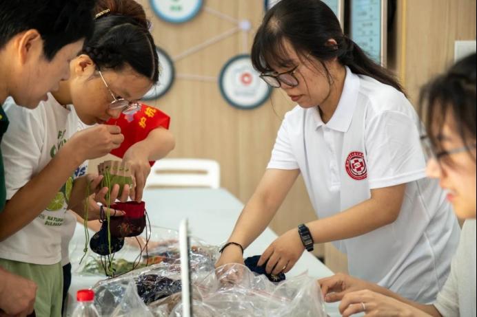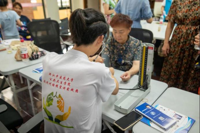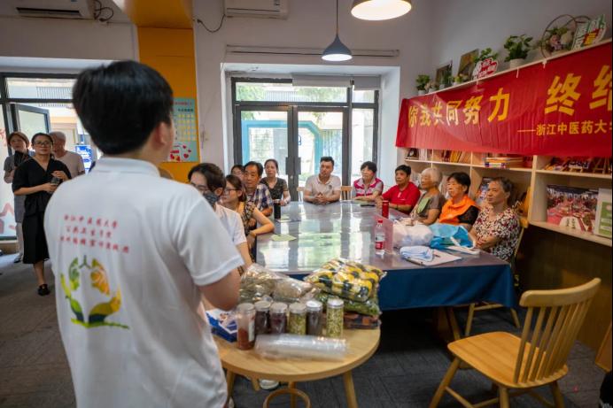 实践团队还提供量血压、测血糖、贴耳豆和中医推拿等健康医疗服务,社区居民可在宣讲结束后根据需要选择相应的服务。炎炎夏日,团队成员结合中医药特色,为居民准备夏季香囊制作材料、提供夏季养生花茶,在送“清凉”的同时也在传递中医药文化。