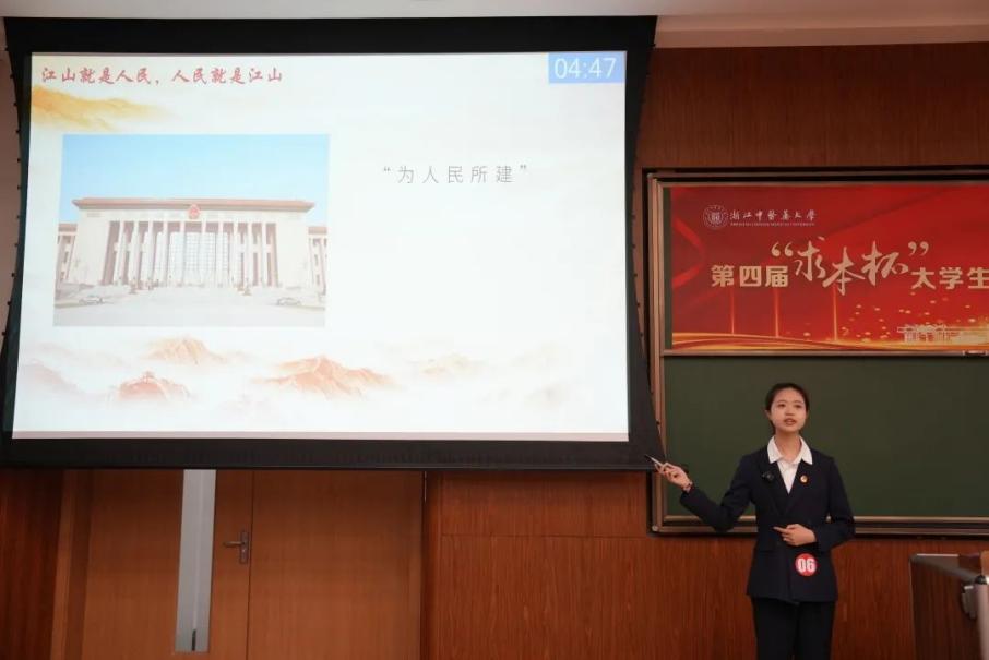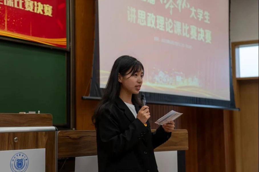 代表公卫习研会参赛的是朱佳依同学,她从容镇定、有条不紊的讲述充分展现了公卫学子的自信和风采。朱佳依同学本次参赛的题目是《江山就是人民,人民就是江山》,她从“打江山”“守江山”“人民至上”三个方面深度解释了“江山就是人民,人民就是江山”这一论断。