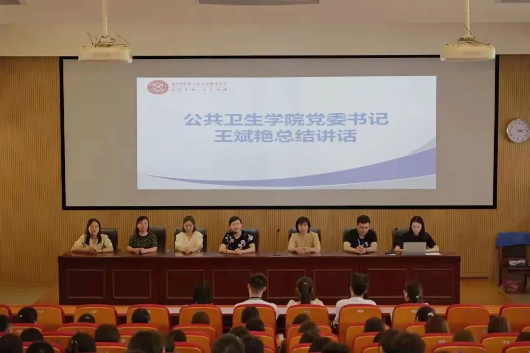 随后,王斌艳书记进行了总结讲话。王书记首先表达了对新生的热烈欢迎,随后介绍了预防医学专业的就业情景和公共卫生学科现状,并向新生们提出了三点期望:一、要爱国爱党爱校爱院爱人爱己;二、要恪守职业道德,弘扬职业精神;三、努力提升自己,恪守规章制度。