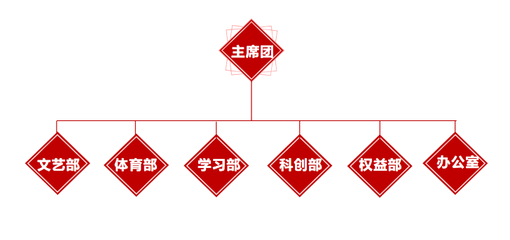 员工会主席团统筹领导员工会各项工作,下设:文艺部、体育部、科创部、学习部、权益部、办公室。