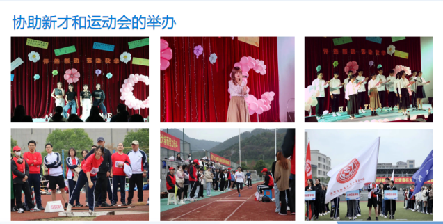 举办各类体育赛事,营造良好全民健身氛围;组织参加校院各类体育赛事,如运动会、新生杯、文明杯等,做好参赛保障工作;负责日常体育相关工作的统计反馈工作。