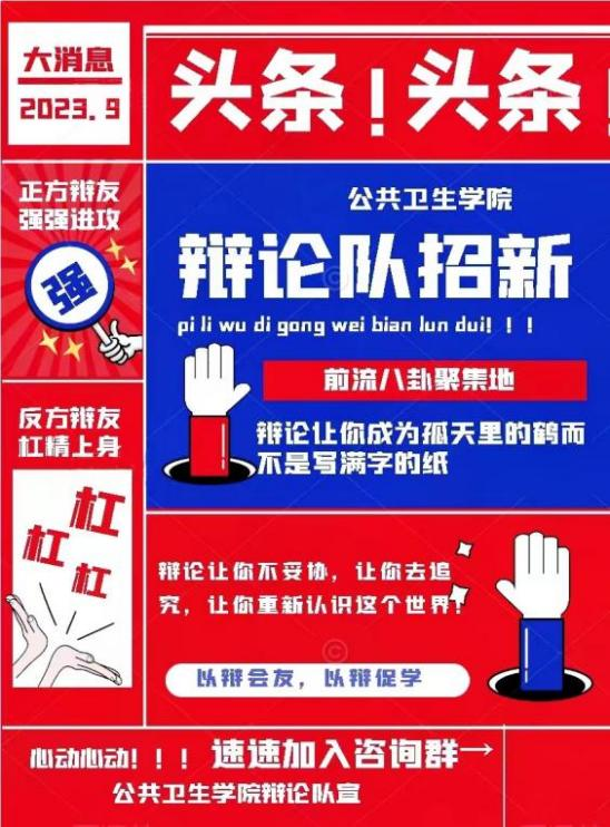 招新要求:无需风华绝代,也不用舌灿莲花,只要你对自己的表达能力自信,口齿清晰还碰巧记词,那么比赛的舞台给你主宰!