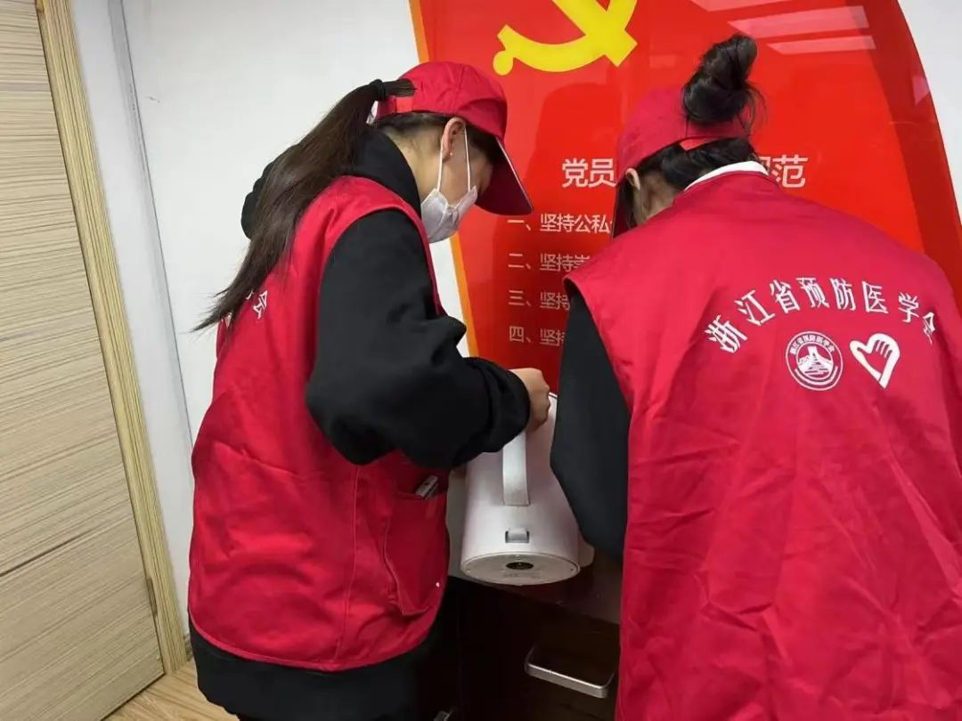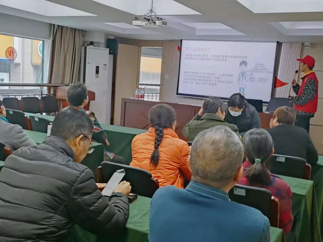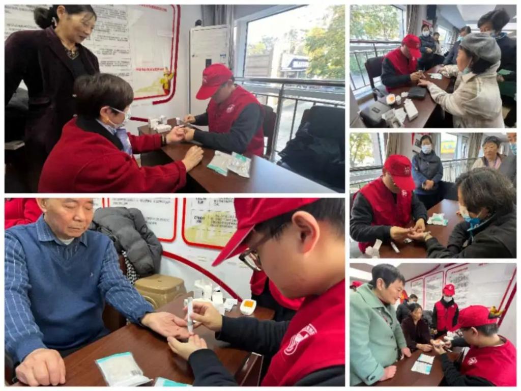 特此,预防医学协会联合观潮社区居家养老服务中心,给住户们进行三高健康宣教并提供量血压、测血糖服务