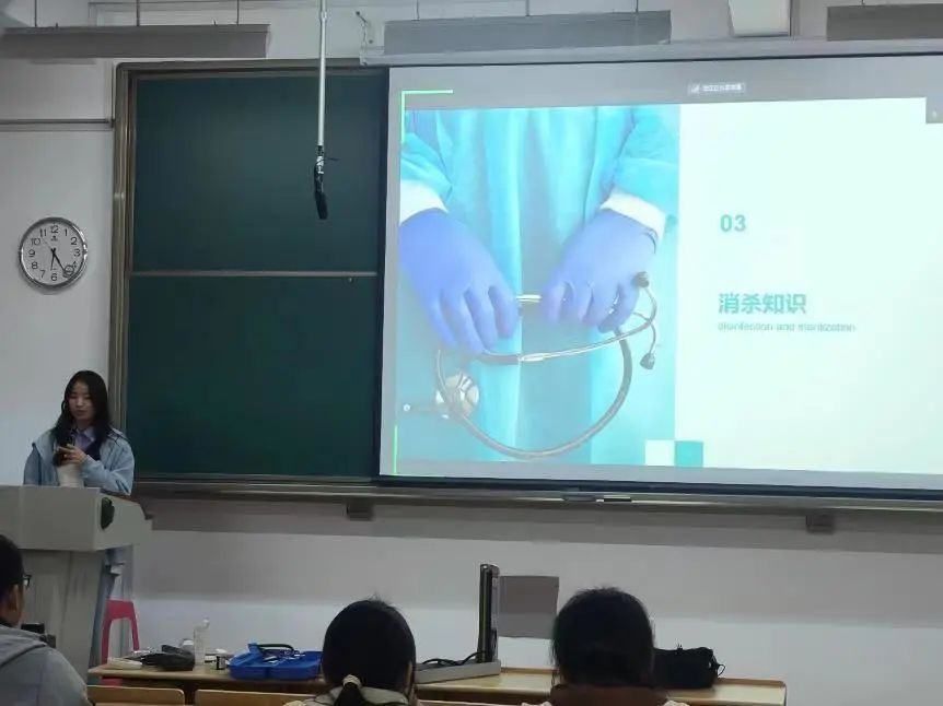 11月20日晚18点,预防医学协会在富春校区B104进行了会员必备的技能培训。讲师为大家详细讲解了血压计和血糖仪的使用,拓展消杀知识。同学们也积极参与,认真学习血压、血糖的测量方法。