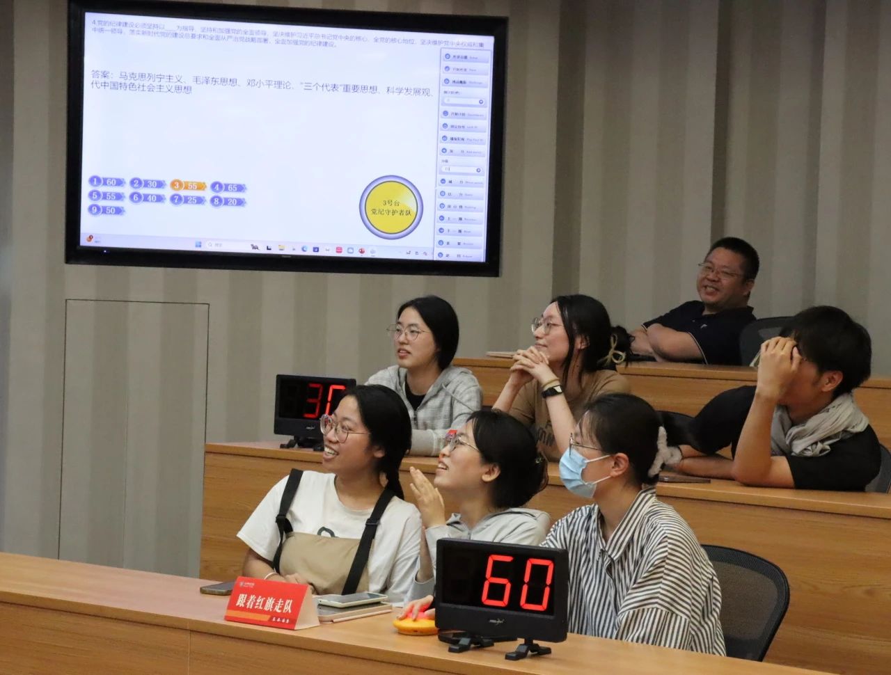 本次活动分为初露锋芒、步步为营、反败为胜、眼疾手快四个环节,并通过积分制决出优胜者。比赛正式开始,现场气氛紧张,每一位选手都全神贯注,严阵以待。比赛过程中,各参赛队员们沉着应对、踊跃答题,拼脑力、比反应、斗心理,纷纷展现出扎实的理论知识功底。选手们的思绪如同交织的战旗,上演了一场精彩纷呈的知识大比拼。