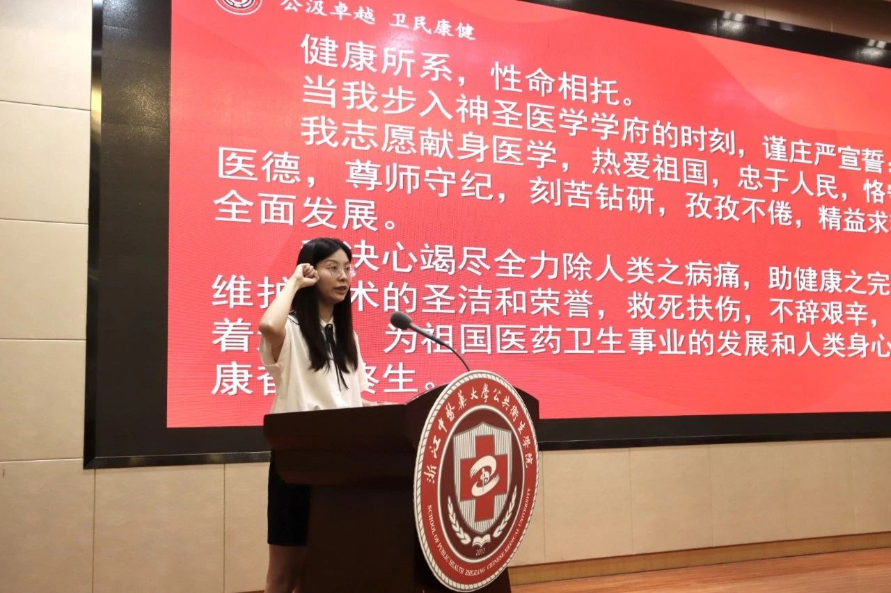 公司博士毕业生徐甜甜领誓,全体毕业生重温了医员工誓词,用饱满的精神、磅礴的气势表达了对医学事业的崇高敬意,坚定了为医学事业奋斗终身的信念。