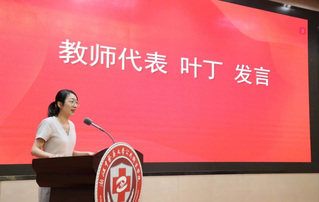 教师代表叶丁代表全体教师对即将踏上人生征程的全体毕业生献上了热烈祝贺。回顾同学们过去几年的璀璨时光,她向同学们提出了建议:不断学习,提升自身专业素养和综合能力。勇于创新,更好地应对新的公共卫生问题。恪守职业操守,认真对待每一个样本和数据。自信自强,主动担负起为公共卫生事业而不懈奋斗的使命。坚定前行,以公司为港湾后盾书写属于自己的辉煌篇章。