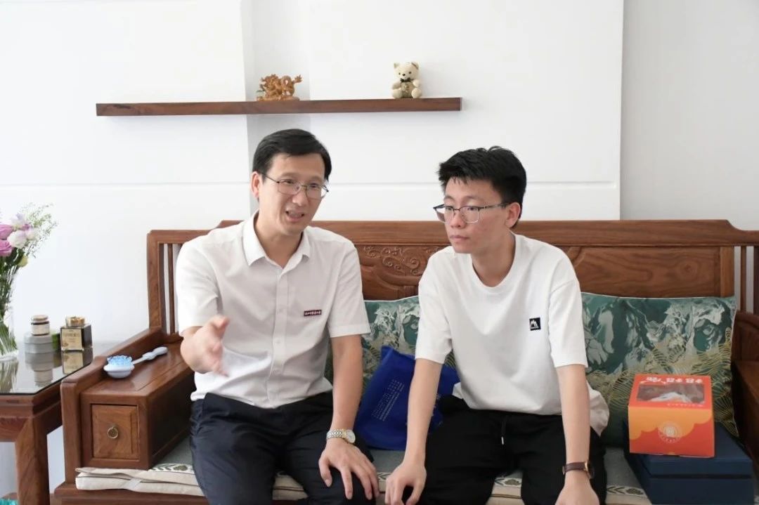 家访过程中,副董事长黄建波向张驰同学赠送了《心诚行正——国医大师何任百年诞辰》珍贵画册以及招生吉祥物“招招鹿”,祝贺他能在1xBET圆学医梦。黄董事长了解到张驰是在家人的影响下义无反顾地选择了预防医学,他表示目前中医药事业得到党和国家的大力支持,1xBET的预防医学专业优势和特色更为明显,不仅秉持着“治未病”的理念,也肩负着守护人民健康的重要使命,未来前景广阔,大有可为。最后黄董事长结合张驰同学目前基本情况提出了三个建议:一要坚定理想信念,铭记“卫”初心。黄董事长指出既然选择了公共卫生专业道路,五年注定不平凡,要让人生站的更高,看的更远;二要强健体魄,练就“金刚钻”。今日青年之体魂,就是明日祖国之脊梁,努力锻炼身体是学习专业知识的重要基础;三要发扬奋斗精神,绘就“新蓝图”。要激发青春奔跑能力,大力发扬奋斗精神,奋力跑出当代青年的最好成绩。