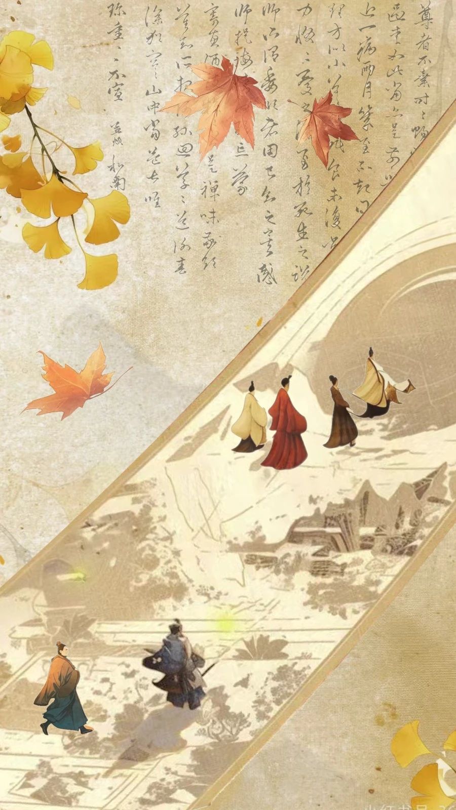 秋天的景色采用温暖的橙黄色,象征着时间的流逝与季节的更迭,与主题中的“天有四时,不知行了多久”相呼应,也象征着光明与希望。“溯叶”二字寓意着追溯过去,如同落叶承载着历史的故事,引领我们探寻根源。在海报中央,身着现代服饰的人物剪影正迈步向前,有孤身一人,也有成群结伴。清晰可见的落叶,每一片都仿佛承载着过去的故事,与主题中的“偏偏落叶,似乎每一片叶子都在诉说着过去的故事”相契合。落叶的飘落与堆积,也暗示着历史的积淀与传承,以及人类在不断前行中留下的足迹。