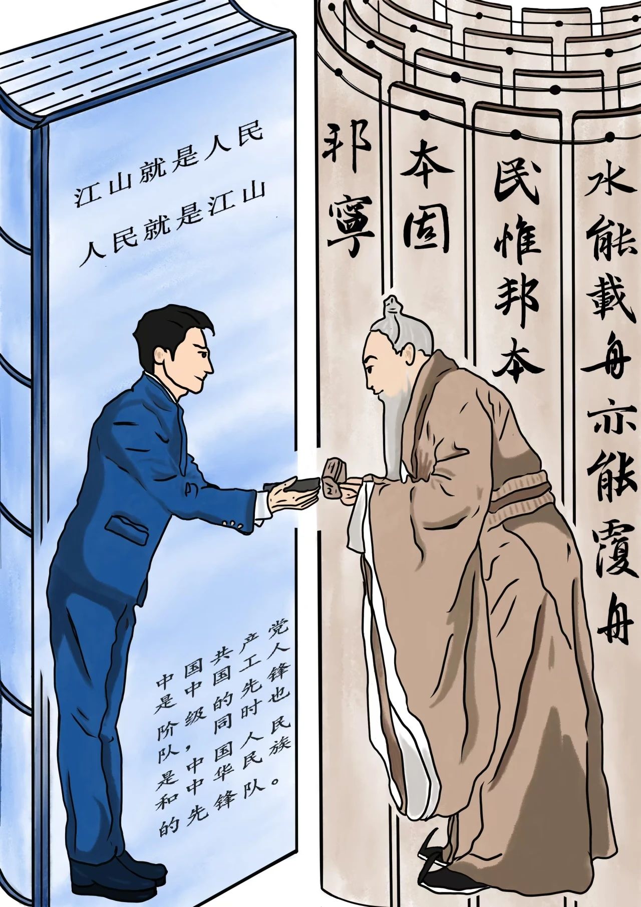 漫漫历史长河中,中华民族一直在探索治国之道。儒家认为“敬天爱人”是民本思想的核心,从《尚书》的“民惟邦本,本固邦宁”到孔子秉承“古之为政,保民为本”的理念;从孟子“民为贵,社稷次之,君为轻”到荀子的“水能载舟,亦能覆舟”……,民心向背决定了国家和政权的稳固性和长远性。而今,中国共产党始终把人民利益放在首位,坚持人民至上,努力践行全心全意为人民服务的根本宗旨和以人民为中心的发展思想。