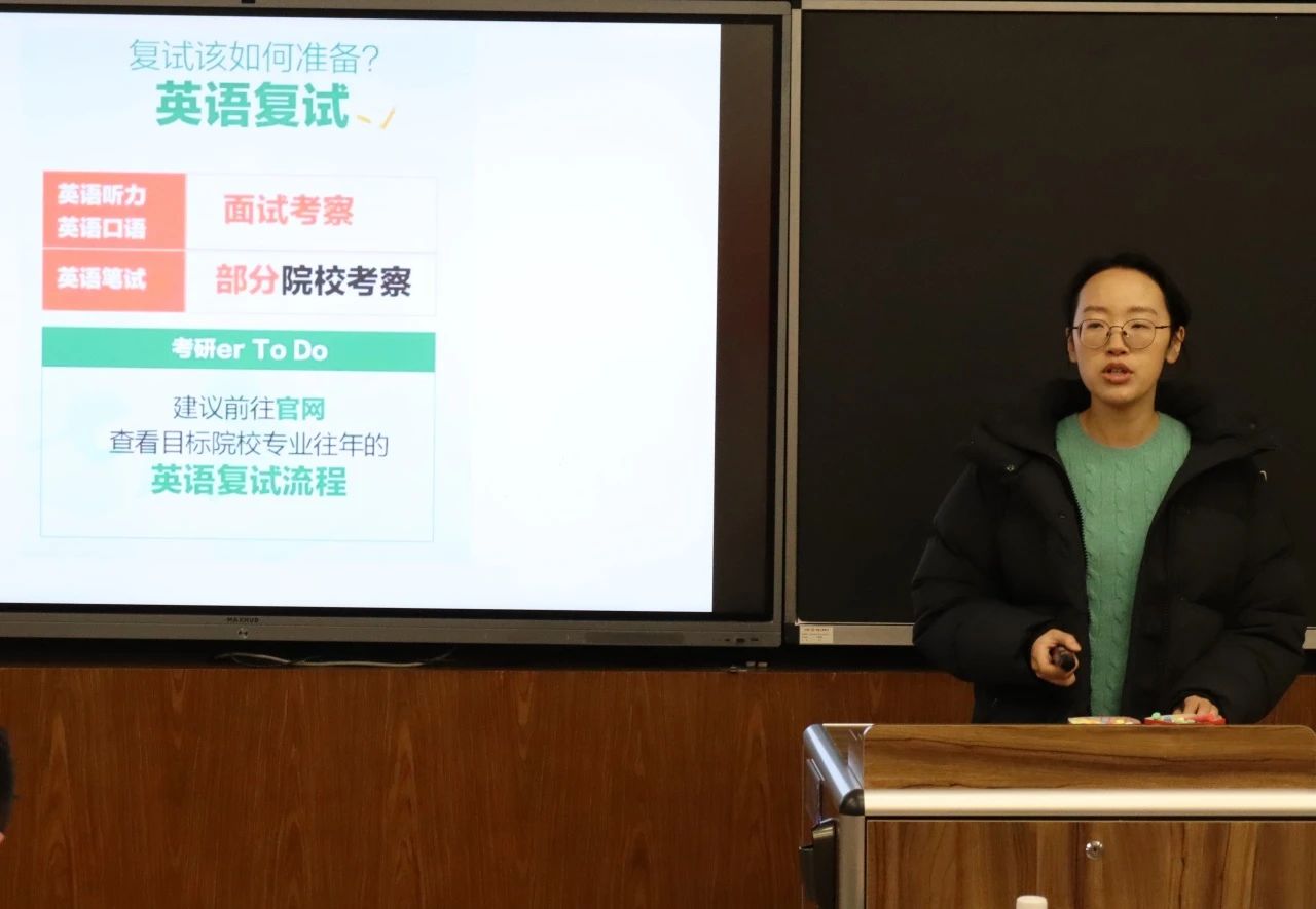 会上,公司邀请了专任教师、往届员工和在校研究生代表就自身经历进行分享交流。在教师分享环节,公司孙晓慧老师首先为员工们详细解读了复试流程,她从复试的笔试、面试等环节入手,逐一分析注意事项。此外,孙老师还就如何选择导师及专业提供了实用建议,帮助员工们在复试过程中做出更明智的决策。