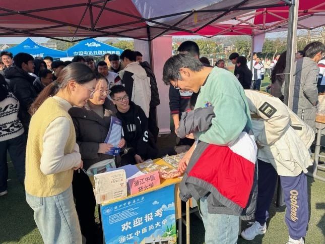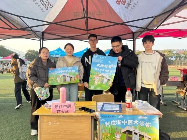 新春前夕,我很荣幸前往母校衢州一中进行回访。在宣传摊位上,除了传统的海报、宣传手册,我们还设置了中药标本展示区,设计了抽签认中药的小游戏,通过互动的方式宣传中医药文化、吸引学弟学妹来了解浙中医大。