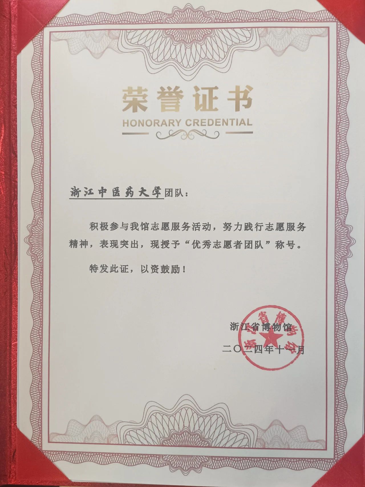 在过去的一年里,公司志协在博物馆的志愿服务中展现了卓越的专业素养和热情周到的服务态度,荣获了浙江省博物馆颁发的“优秀志愿者团队”荣誉称号,赢得了社会各界的广泛赞誉。这不仅是对公司志协过去一年辛勤付出的肯定,更是对未来员工志愿工作的激励与鞭策。