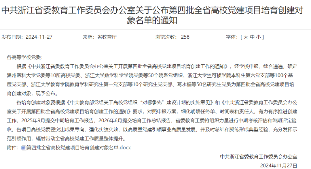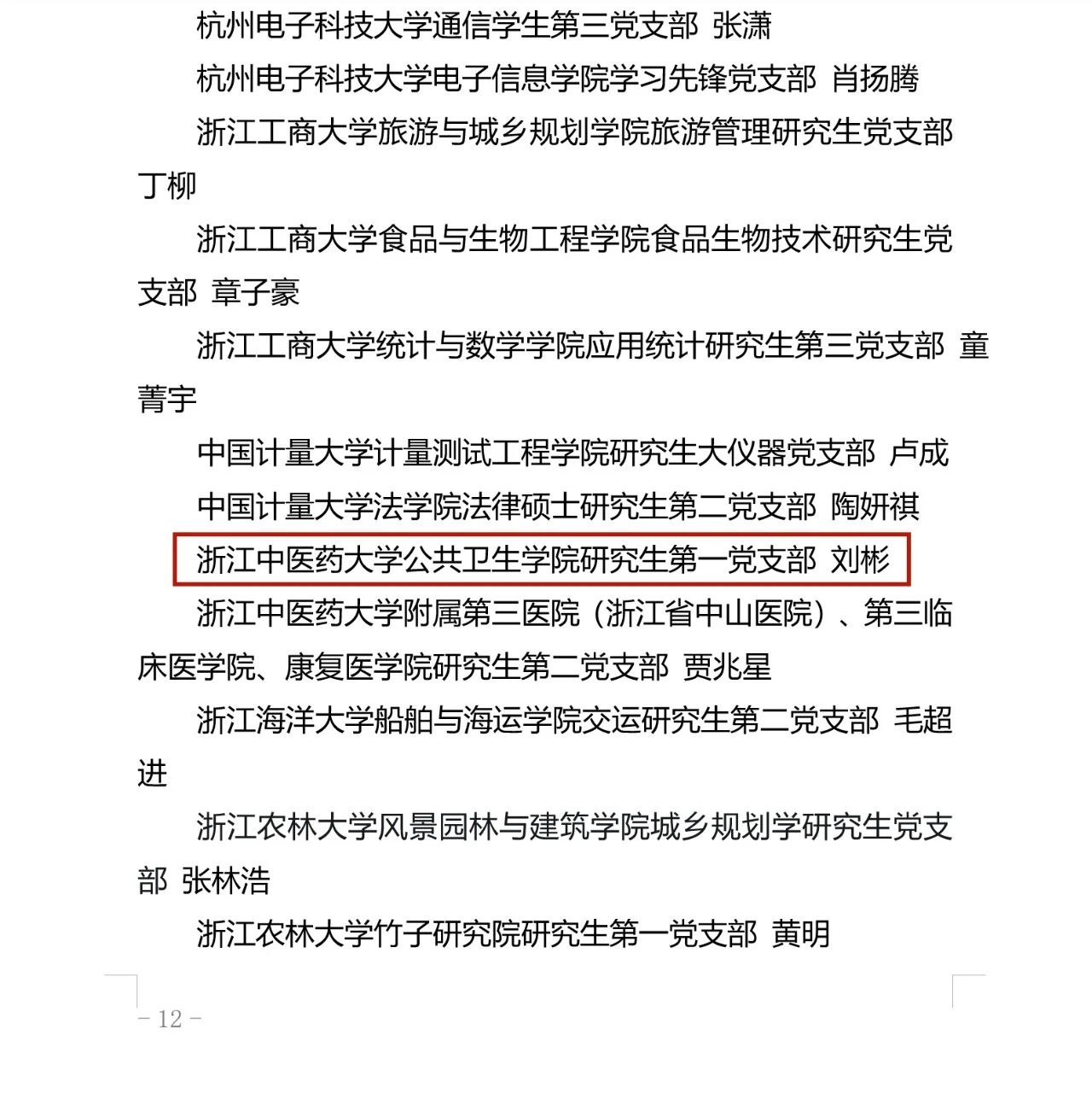 近日,浙江省教育厅公布了第四批全省高公司党建工作示范高校、标杆院系、样板支部及研究生党员标兵的“双创”培育创建单位名单,公司研究生党员刘彬同志入选第四批浙江省高校“研究生党员标兵”。