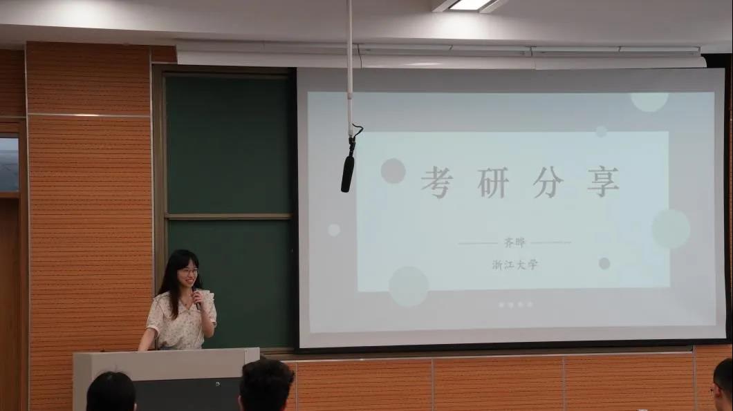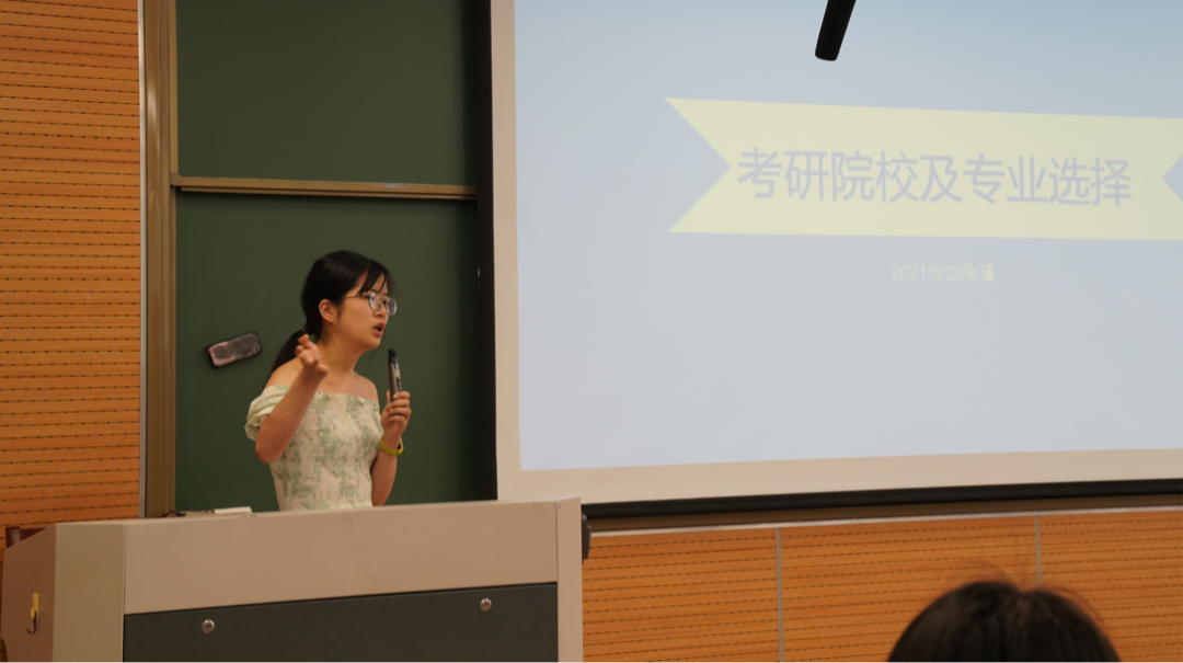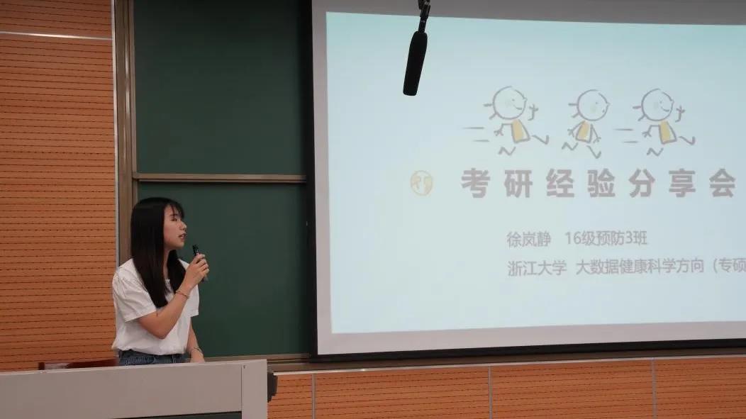 张瑾学姐现被浙江大学录取。学姐用自身的经历安慰我们纵使现在的成绩一般,凭借自己的努力也能得到傲人的成绩。张瑾学姐通过公共卫生与预防医公司校排名、不同公司考试科目差异以及考研竞争力带我们了解考研。最后学姐鼓励我们进行职业规划了解自己与世界,参与竞赛与科研或是课题与实验发现自己的兴趣方向,从而更好地选择专业。
