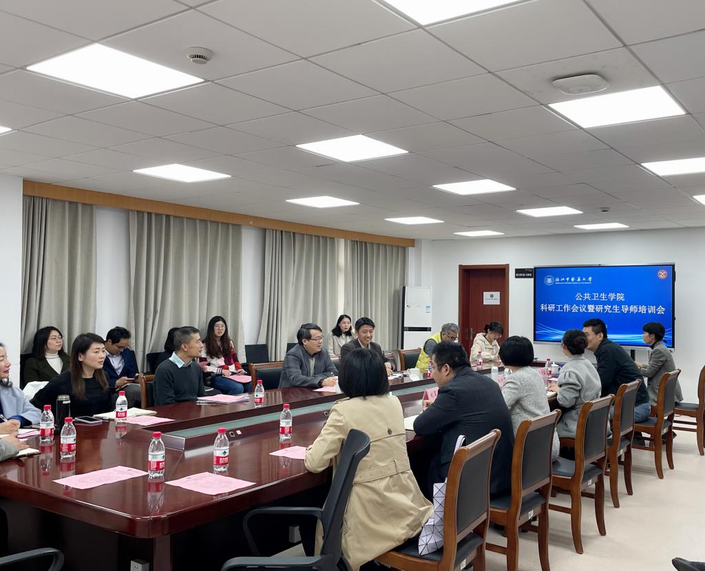 授牌仪式后,傅传喜副经理从公司发展、科研成果、科研建设三个方面汇报了建院以来的进展。傅传喜副经理指出公司独立设置时间不长,但大家干劲十足,科研成果质量高、数量多,但是在科技成果和专利申报上仍需努力。公司也将继续为老师们服务,通过“三化”举措帮助大家走好科研之路。首先是基金申报的“个性化”,通过“一对一”结对,个性化函审、面评等方式切实帮助老师们提高基金申报质量以及中标率;其次是“常规化”,公卫“浙”里谈的定期开展旨在不断提高老师们科研水平、促进学科交叉、拓宽科研思路;最后是“人性化”,不断优化公司科研管理制度、科研服务流程,为公司科研工作开展提供更加人性化、便捷化的服务,让各位老师科研教学之余无后顾之忧。