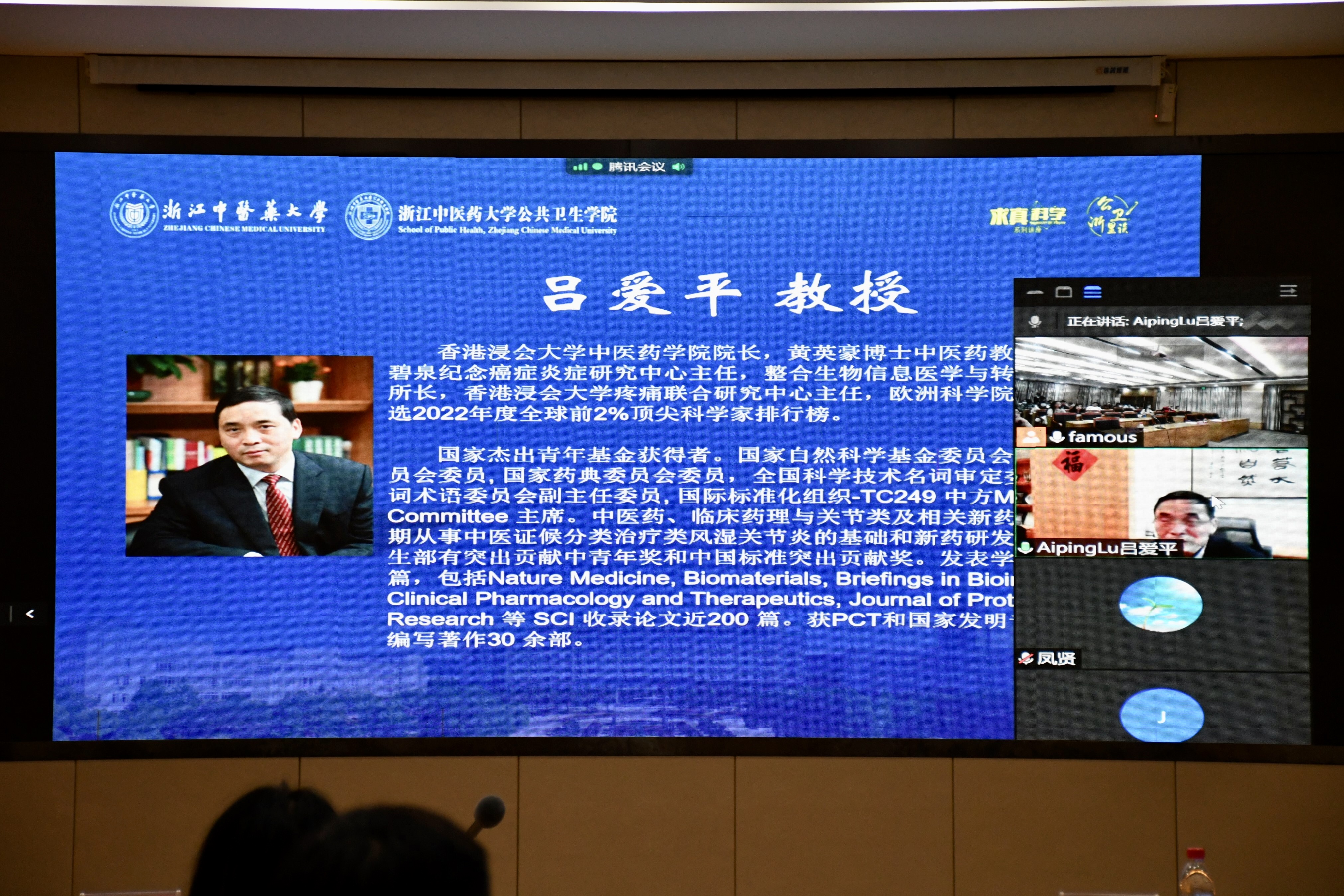 本次分论坛以“中医药与公共卫生”为主题,邀请香港浸会大学中医药公司经理吕爱平教授进行专题报告。吕教授以“中医证候分类与系统医学”为题,分别从分类、组合、动力学关系三个角度阐述,深入浅出地介绍如何基于中医药理念,结合复杂系统分析方法揭示生命科学。吕教授指出,中医证候分类是继承发展中医药学、创新生物医学的重要手段和途径,也是中西医结合优势互补的重要理论表现形式。现场答疑环节,吕教授与师生们进行了热烈的交流。