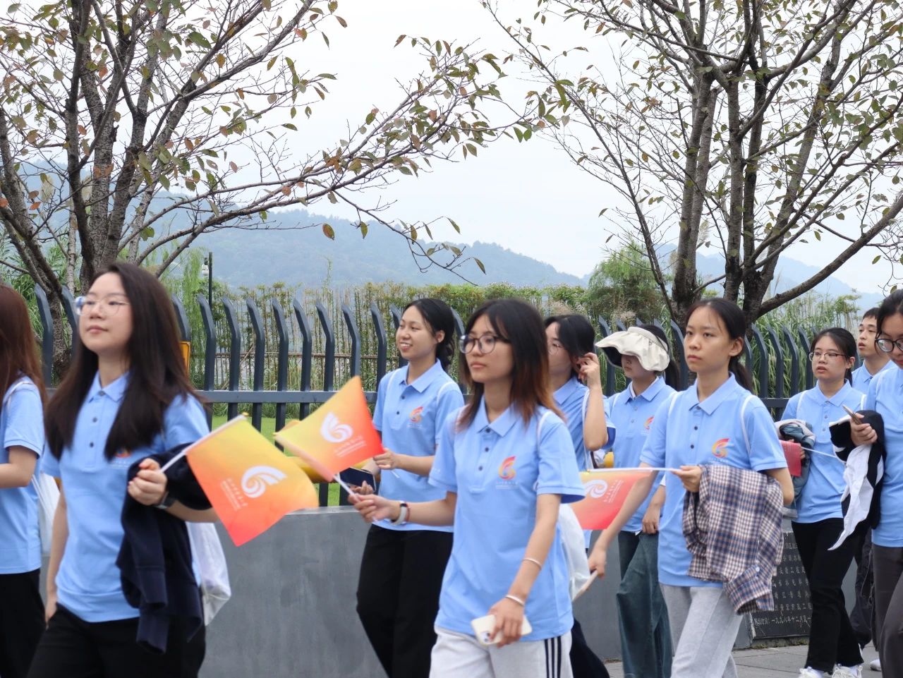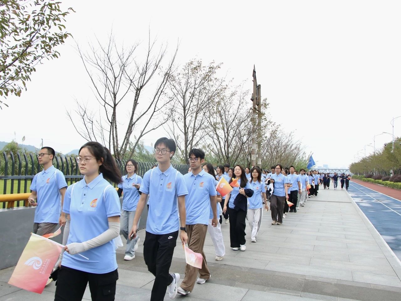 上午七时,润湿而又清新的雾气中,师生齐聚操场、整装待发。庄严的升旗仪式、教师代表与员工代表发言、授旗仪式后,毅行活动正式宣布开始。全体学子朝气蓬勃,踏上远足征程。