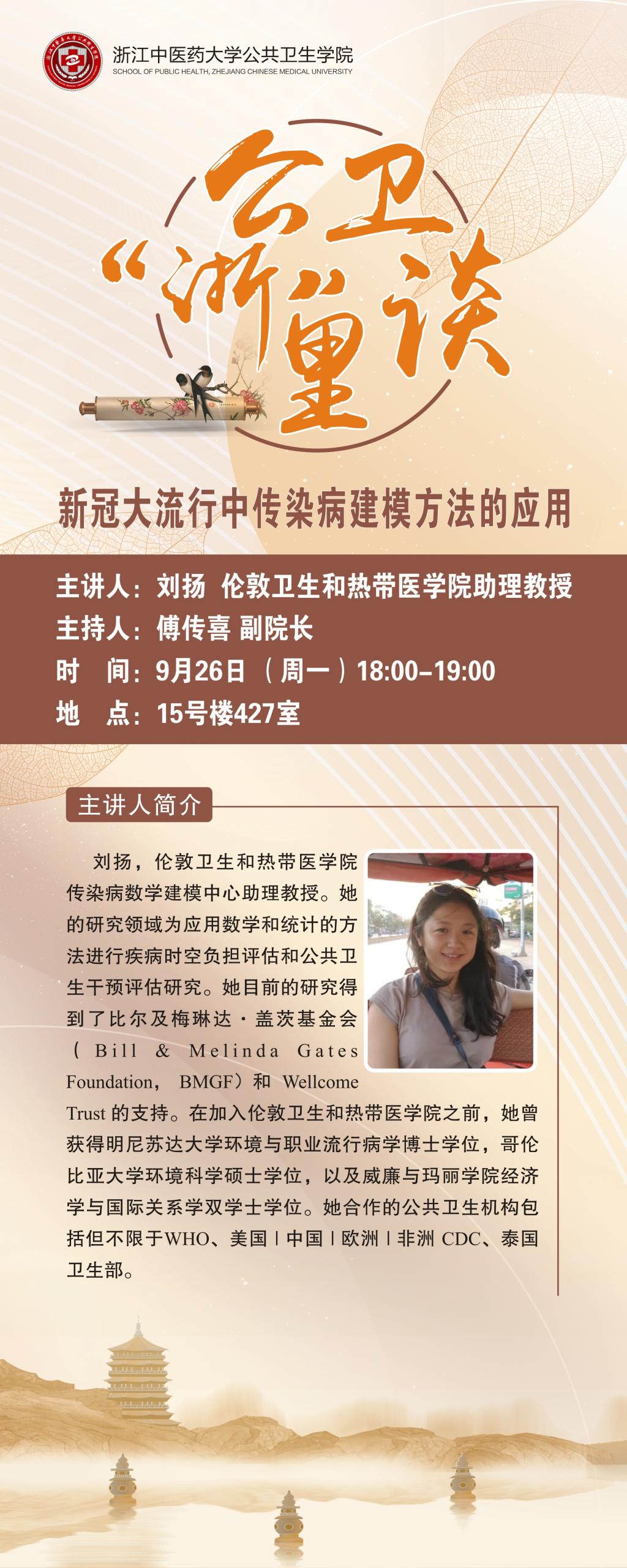 “公卫‘浙’里谈”系列学术讲座预告——伦敦卫生和热带医公司刘扬助理教授