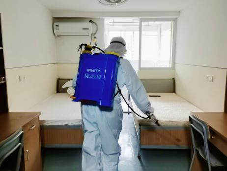 “‘疫’尘不染,爱卫同行”消毒消杀活动:当前各地疫情反弹,全国新增本土感染者仍在快速增加,公司立足预防医学专业技能,通过专业教师亲身指导、实地培训,安排志愿者为校内隔离点的宿舍进行科学规范消毒消杀,切实阻断病毒传播途径,保卫师生健康。