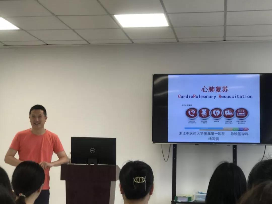 本次培训的内容是《心肺复苏(CPR)》。本次,公司邀请到了公司急救技术培训的“金牌教练”——杨洞洞老师(浙江省中医院急诊科)为同学们详细讲解和演示心肺复苏的基本步骤和关键技术。