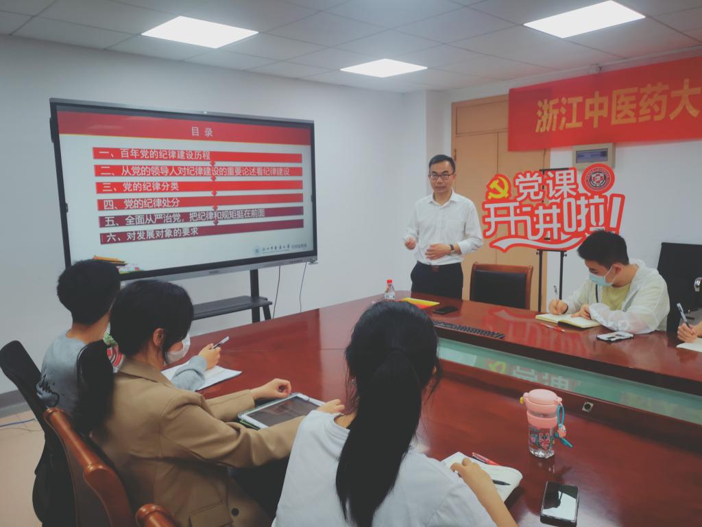 校纪委副书记朱建良老师首先从2021年全党开展的党史、四史学习教育入手,指出党的纪律是党的各级组织和全体党员必须遵守的行为规则,是维护党的团结统一、完成党的任务的保证。结合党的百年发展壮大历程,朱书记细致梳理了在新民主主义革命时期、社会主义革命与建设时期、改革开放时期和新世纪、党的十八大以后等四个不同时期,中国共产党在“纪律建设”方面的百年建设历程。随后,朱书记从各位党的领导人就纪律建设作出的重要论述,强调了党内纪律建设的重要性和必然性。报告中,朱书记详细介绍了党的纪律主要包括政治纪律、组织纪律、廉洁纪律、群众纪律、工作纪律、生活纪律六大类,并结合翔实的案例对党员的纪律处分、严重违犯党纪的党组织的纪律处理措施等四个方面进行了说明。最后他希望党员发展对象要坚决遵守政治纪律、切实增强纪律观念和法治意识、同各种违规违纪行为作斗争,要自觉做到知党纪国法之敬畏、存戒惧、守底线,使铁的纪律真正转化为日常习惯和自觉遵循。