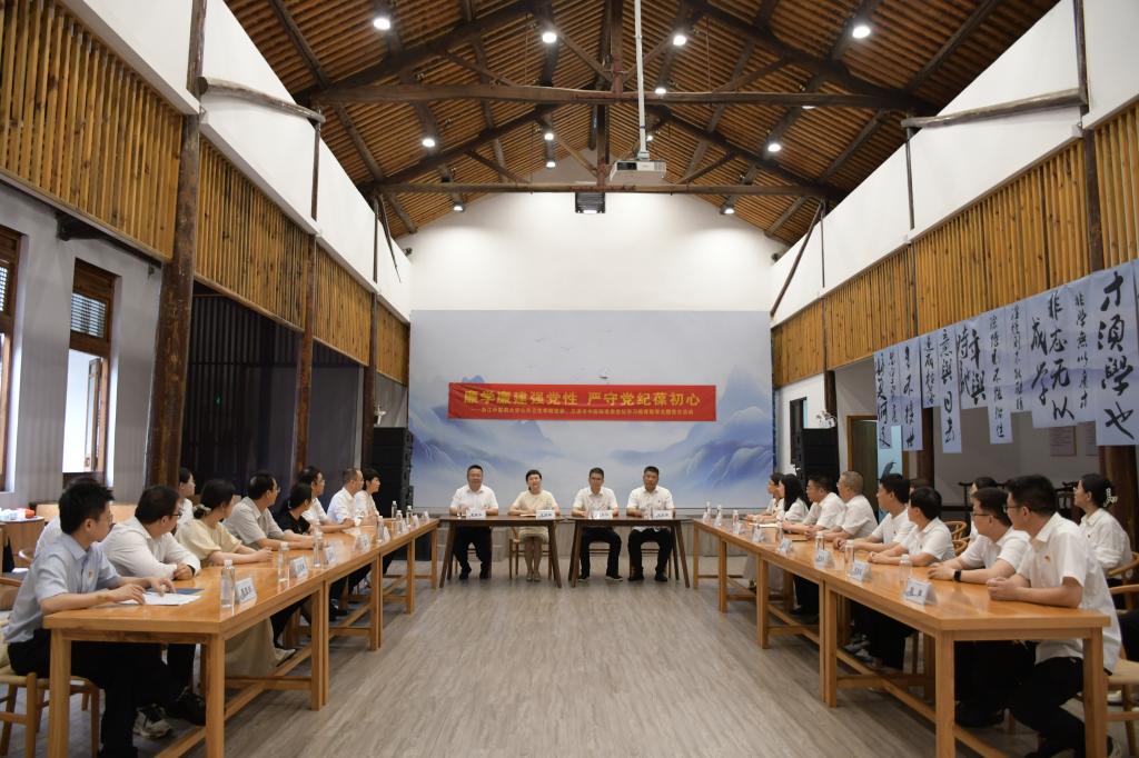 接着,全体党员在兰溪诸葛村会议室进行了交流研讨。公司党委书记王斌艳和兰溪市中医公司党委副书记、经理郑卫方分别介绍了各自单位概况及党纪学习教育开展情况。公司党委副书记、纪委书记季聪华领学并深入解读《中国共产党纪律处分条例》,兰溪市中医公司党委委员、纪委书记水胜前通过讲解生动鲜明的案例,开展了警示教育。与会党员围绕党建共建、人才培养、社会合作等开展讨论交流,进一步探索合作新模式